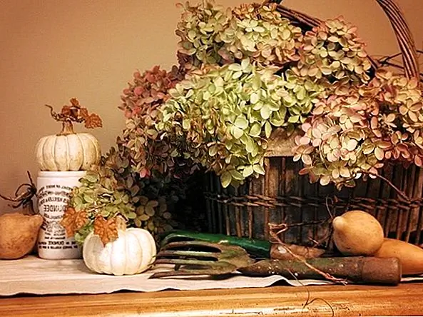 Или выйдите на свой двор и вырежьте несколько ветвей, чтобы создать красивую падающую настройку, как на картинке выше. Сушеные гортензии в прекрасных стеклянных баночках, кувшинах или корзинах, как изображено выше, являются идеальным переходным растением, если вы не совсем готовы, в начале сезона, работать с темным небом.