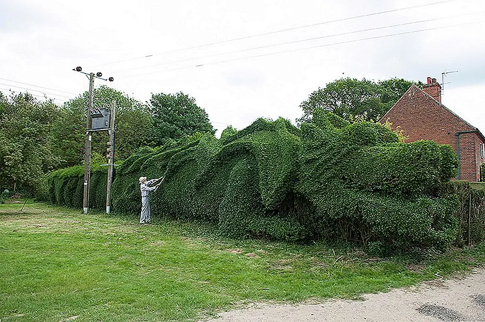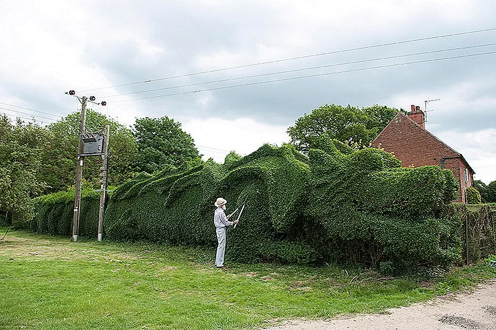 Видно, что это колоссально, массивная зеленая драконская изгородь стоит на улице, в то время как ее амбициозно ухоженные тела змеи вдоль собственности. Из ноздрей над открытым ртом, мимо больших крыльев и до шести наборов ног, детали дракона были тщательно вылеплены в вираж. Прошло 10 лет, потому что садовник-перфекционист добавлял детали после подробностей, поскольку хедж начал принимать форму дракона. Мы все можем согласиться с тем, что его амбиции и настойчивость, наконец, окупаются.