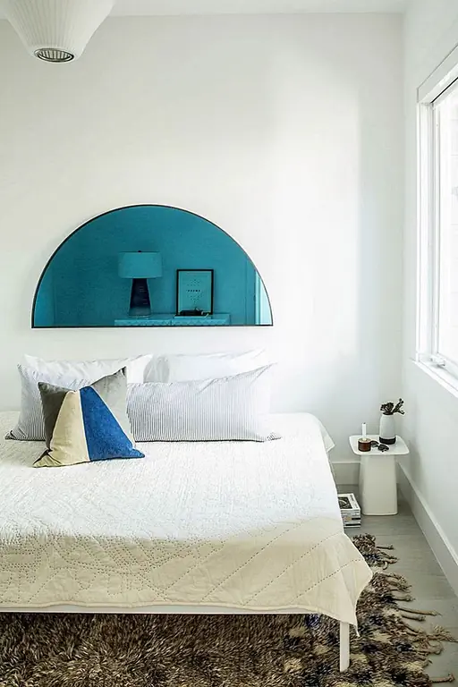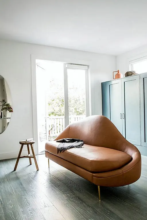 Но витрина этой маленькой квартиры не ограничивается своими предметами мебели. «Мы куратировали новую и яркую коллекцию современного искусства художников Ноэми Гоудала, Тауба Ауэрбаха и Йозефа Хофленера как смелую оппозицию к приглушенной палитре пространства», - добавили дизайнеры. Еще одна добавленная драгоценность - квартира также соединяется с открытой террасой с захватывающим видом на город. [Фото автора Aubrie Pick]