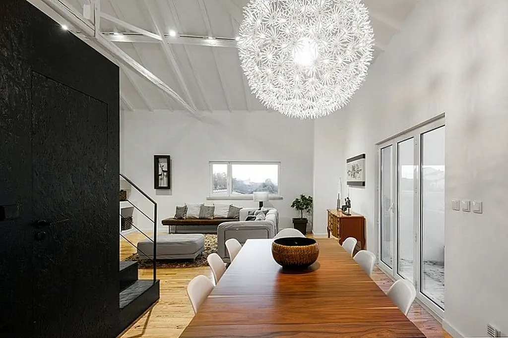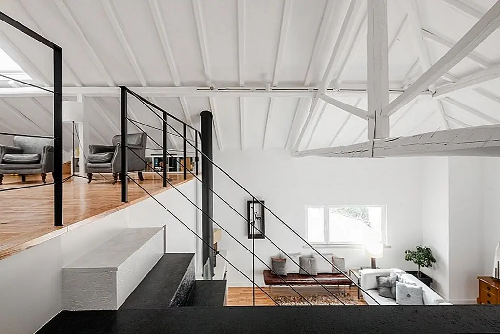 Оригинальные элементы конструкции были тщательно сохранены, а дополнения вносят свой вклад в новую современную атмосферу. Простая черно-белая цветовая палитра делает этот дом просторным и элегантным.