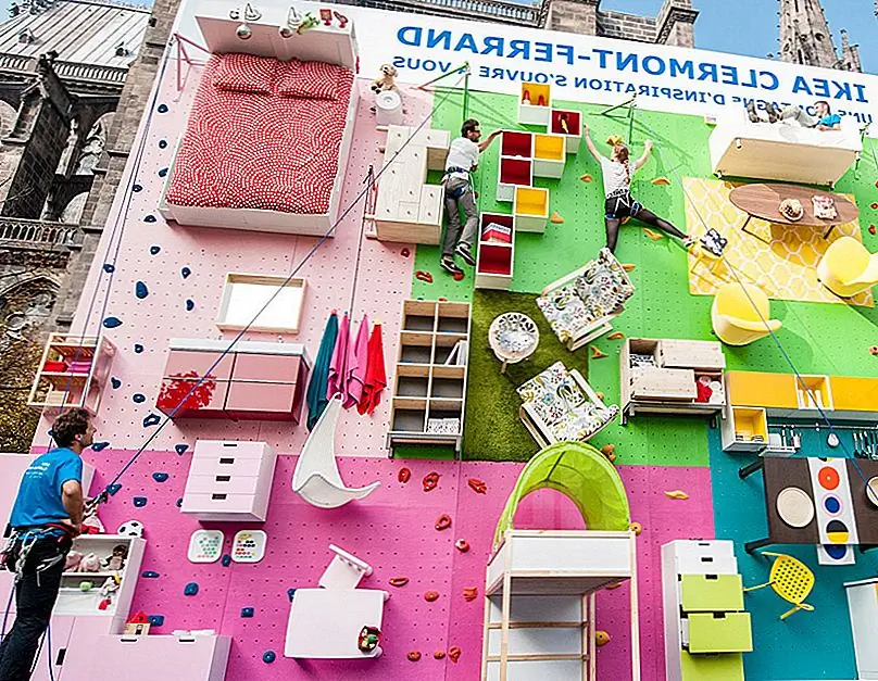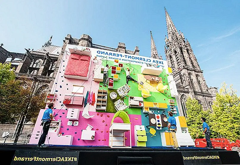 Рекламные кампании, реализованные шведским мебельным брендом IKEA, обычно занимают высокое место в творчестве, но ждут, пока вы не увидите последний «трюк» компании! Подъемная стена ИКЕА это вертикально спроектированная квартира, в которой могут обнаружиться все, у кого есть правильные мышцы ног и мягкое место для приключений. Эта красочная установка возле массивного готического Клермон-Ферранского собора призвана продвинуть 30-й магазин розничной торговли, открытый во Франции, и был разработан в сотрудничестве с местным агентством связи Ubi Bene. Радость игры выдается яркими цветами, сильно контрастируя с черным мостом лавы.
