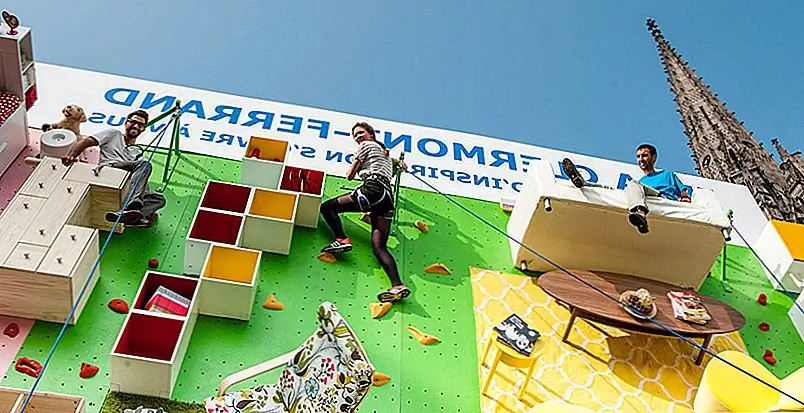 Как и на обычной альпинистской панели, авантюристы могут подняться, используя различные ручки для рук и ног. Только то, что в этом случае, эти вершины скалолазания также являются кусками реальной мебели: шкафчики, столы, стеллажи и даже кровати. Самое крутое преимущество заключается в том, что, если вы чувствуете усталость, вы можете расслабиться в некоторых сидениях на дисплее. Каждому альпинисту помогают по пути с защитным снаряжением и советами профессиональных сотрудников. Эта установка IKEA является одним из самых интригующих выставочных залов, которые мы видели - мы не можем придумать более привлекательный способ убедить прохожих протестировать мебельный продукт.