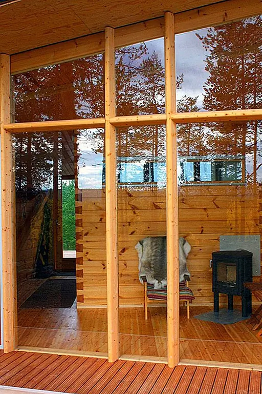 Как будто, бросая вызов суровой погоде в Лапландии, вилла Valtanen, представленная Arkkitehtitoimisto Louekari, вдохновляет уют и тепло. Это необычное уединение в пустыне, состоящее из жилого пространства, сауны и дровяных садов, использует древние деревянные конструкции, связанные с использованием принципов современной архитектуры:В гостиной и сауне есть бревенчатая рама с угловыми суставами, которые являются типичной старой финской системой зданий. Между сауной и гостиной - это высокое пространство с большими окнами, открывающимися на лесной ландшафт Лапландии.