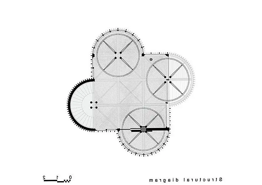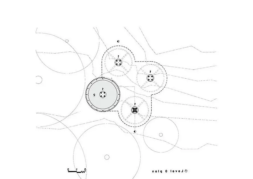 «Организационная схема структуры исследует чистую геометрию квадрата, каждая из которых разделена на три модуля», - объяснили архитекторы. «Два из этих модулей определяют диаметр круга на каждой из четырех сторон квадрата, что приводит к компоновке планшета.» Когда вы идете по планам архитектуры в конце сообщения, этот, казалось бы, сложный дизайн будет распутываться логичная, но увлекательная конфигурация. Фотография: Адам Летч и Микки Хойл
