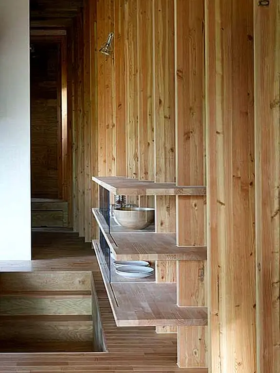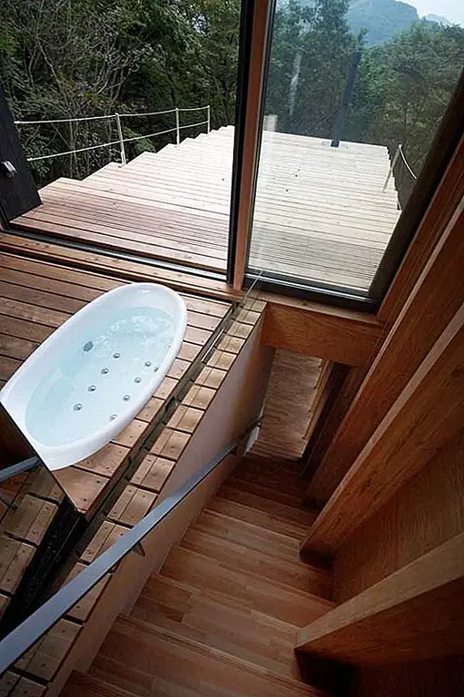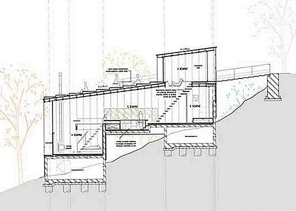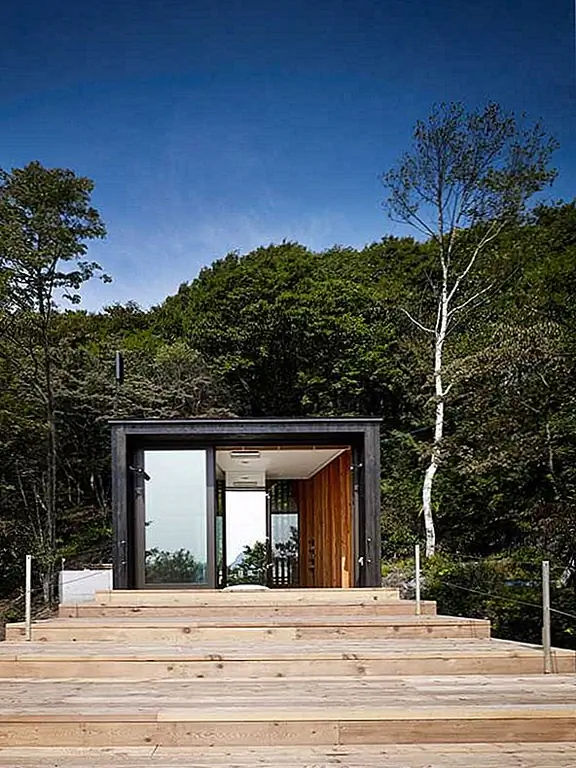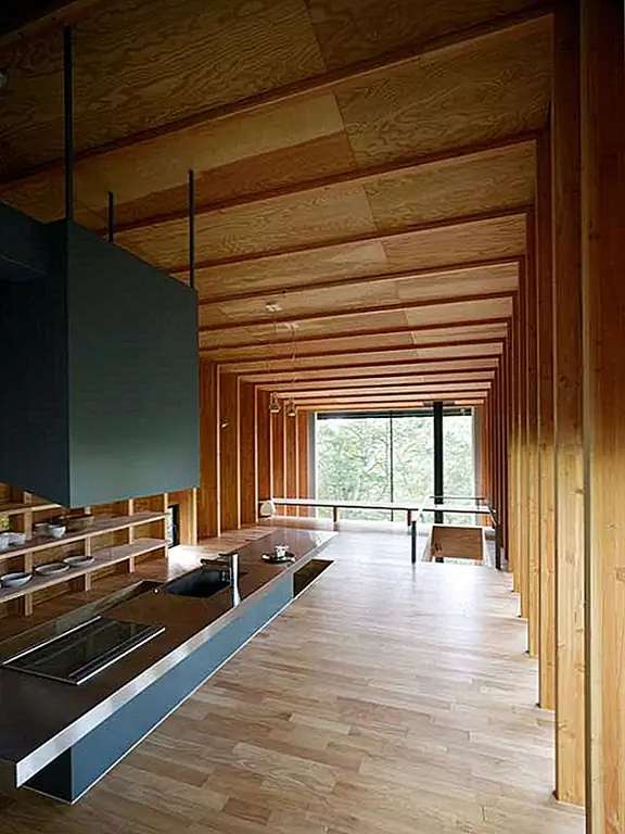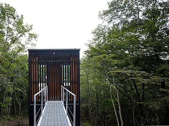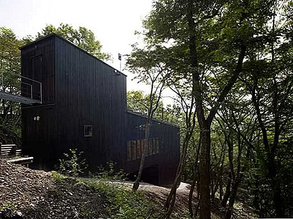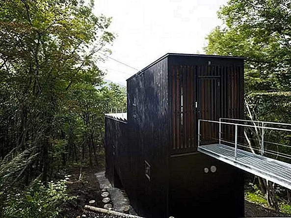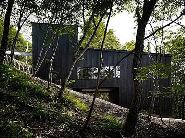Этот темный плакированный горный дом, разработано Miurashin Architect + Associates, замаскирован между деревьями на наклонной местности в Каруизаве, Япония. Павильон, протянутый через металлический мост, приглашает семью и гостей в теплые и современные интерьеры, одетые в лес через павильон верхнего этажа. Живые и развлекательные помещения защищены средним этажом, а нижняя часть - частным пространством. Располагая своим загадочным присутствием и отражая окружающий лес в своих окнах, горная резиденция привязана к склону в трех местах. Его архитектура обращается к необходимости владельца подключиться к окружающей среде очень индивидуально - это привело к созданию наклонной лестницы, напоминающей крышу, используемую для размышления о лесных видах. Вертикальные окна и облицовка стремятся имитировать высокие деревья вокруг, лучше интегрировать архитектуру с природой. Является ли этот тип темной современной архитектуры чашкой чая?