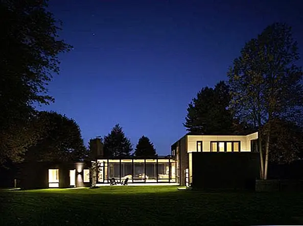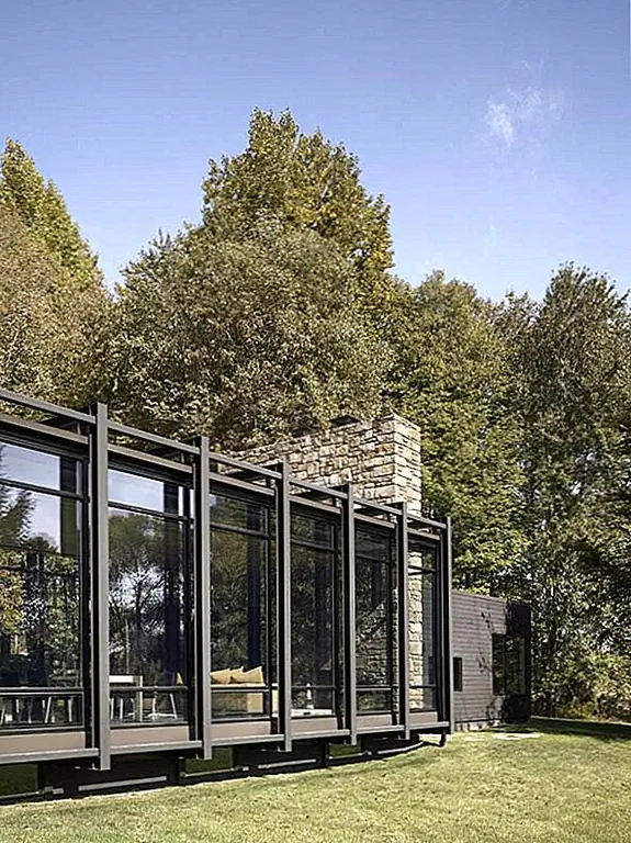 Три взаимосвязанных тома формируют это стальное, каменное, стальное и деревянное жилище, расположенное в лесистом пятиэтажном доме в Даунингтауне, штат Пенсильвания. Этот сельский пейзаж помог студии в Нью-Йорке Архитектура Коко + Дизайн построить современную сборку жилых помещений, в которой в диалоговом диалоге будут задействованы соседние фермерские здания Amish, созданные вручную. Известный как Дом Дангл-Берд, великолепная конструкция площадью 3000 квадратных футов выглядит как освещенный аквариум, если смотреть со стеклянной стороны. Мастерство и желание составить коллекцию опыта во время движения по дому привели к тому, что архитекторы проявили элегантность материалов при сохранении низкого воздействия на окружающую среду.