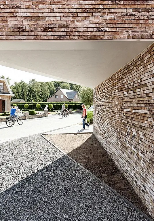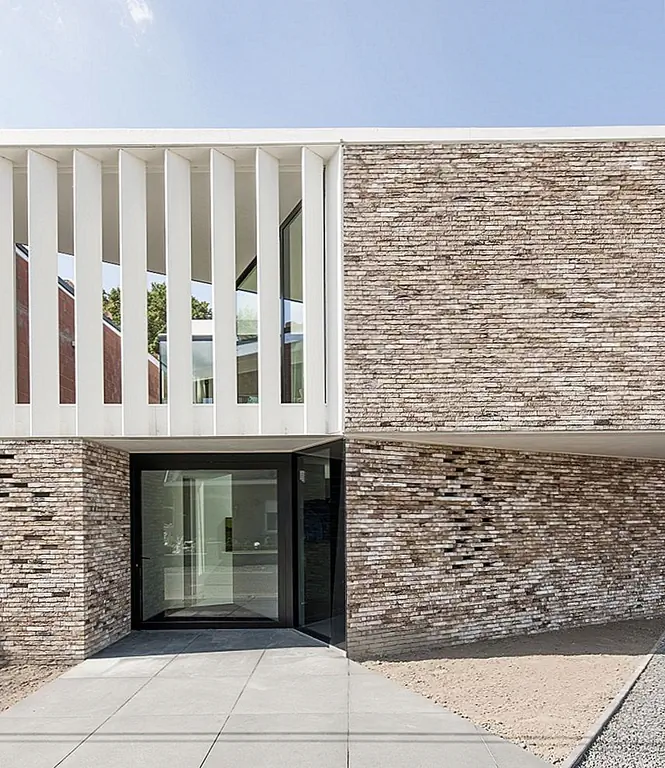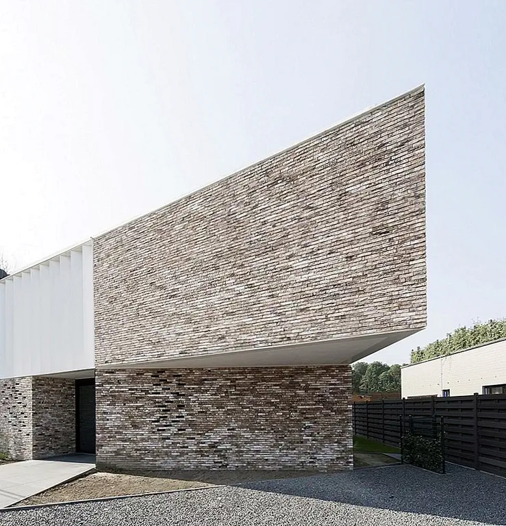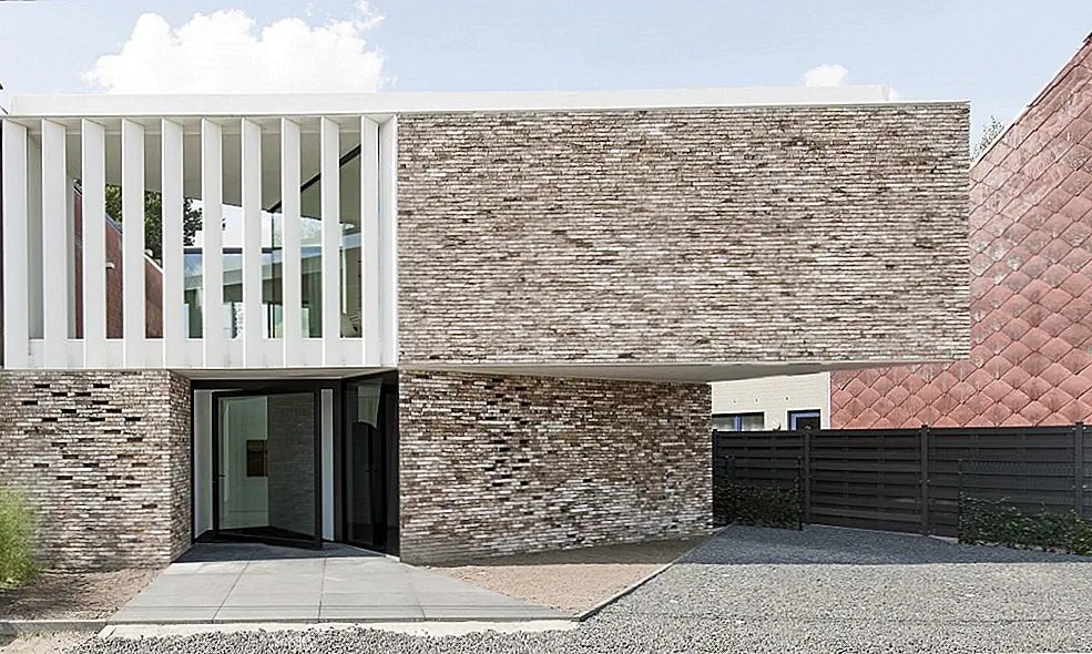 Отель House K by GRAUX & BAEYENS Architecten расположен в тихой лесистой местности. Он предлагает семейное убежище, оснащенное высоким уровнем жизни. Краткое изложение владельцев запрашивало здание, которое обеспечивало бы достаточно света и взглядов, но без компромиссов в уединении. Для наружной отделки был выбран светло-коричневый / бежевый кирпич, который элегантно контрастировал с белым и черным алюминием.