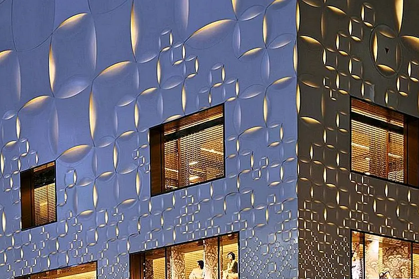 В зависимости от момента дня этот массивный магазин в Токио предложит нескольким достопримечательностям прохожим: «Нежные выпуклости и вмятины создают фасад опаловых бежевых рельефов. С этим рисунком, фасад показывает различные проявления в солнечном свете, а также ночью, светодиодные фонари за рельефами зажгли фасад, чтобы сделать еще одно выражение, напоминающее монограмму Луи Вуиттона ». Отличительный силуэт здания в сочетании с его облицовочной обшивкой позволяет легко заметить издалека на переполненных улицах Токио. Как бы вы прокомментировали общий дизайн этого нового магазина LV? [Фотография: Daici Ano]