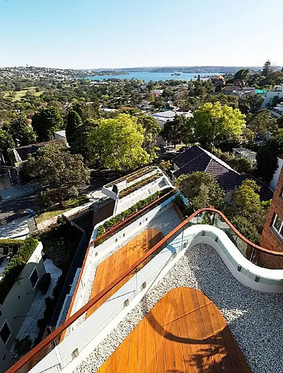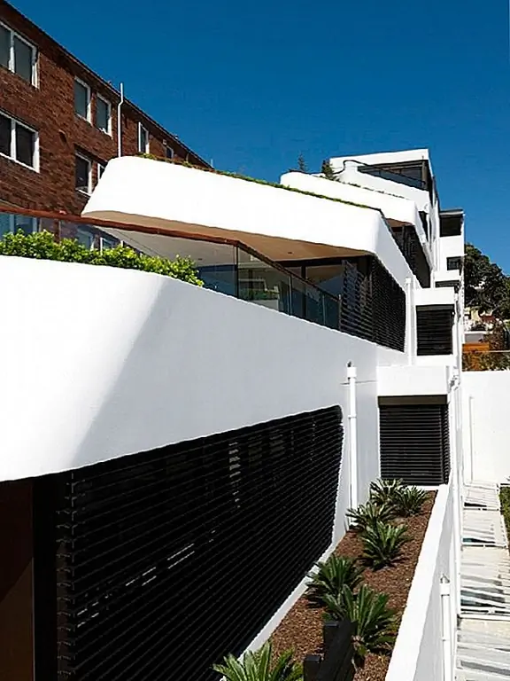 Апартаменты Benelong Crescent это проект, недавно завершенный австралийской студией Архитекторы Луиджи Росселли и расположен в Бельвю Хилл, восточном пригороде Сиднея в штате Новый Южный Уэльс, Австралия. Форма здания, как говорят, вдохновлена знаменитой башней Эйнштейна Эриха Мендельсона в Потсдаме. Его можно было бы также похож на яхту в движении. Согласно описанию архитекторов, квартиры каскадом вниз по склону, чтобы следовать за контурами, а изогнутые террасные балконы формируются нерегулярными границами участка, округленные от преобладающих ветров. Жилые площади имеют обширные просветы, открывающиеся на больших террасах, расширяя внутренние пространства на проецируемом панорамном открытом пространстве. Высокий конец здания выходит на тихую улицу с большими деревьями, а стены выложены, чтобы обернуть вокруг деревьев. Индивидуальное отношение к различным квартирам обеспечило «не плоский» вид.«Как вы находите архитектуру этого сложного многоквартирного дома?