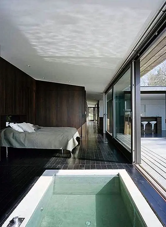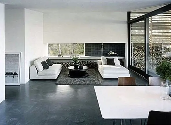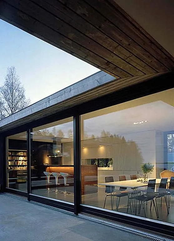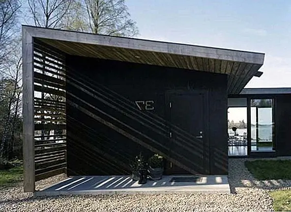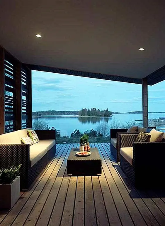С внутренней стороны дом имеет очень современную обстановку, а яркая мебель контрастирует с темными украшениями, чтобы подчеркнуть идею света и тьмы из-под арктического круга. материалы, используемые снаружи, такие как необработанный сосновый лес и смазанный венге, оживают внутри сквозь деревянные полы. Полу-внутренняя терраса дает место солнцу пробираться сквозь оболочку и разминать весь дом. В течение дня свет захватывается огромными окнами и ясным видом на океан. Бетон и дерево, свет и тьма, вода, огонь и свежий воздух - все эти элементы приносят жизнь этому дому в Швеции.