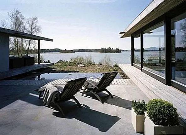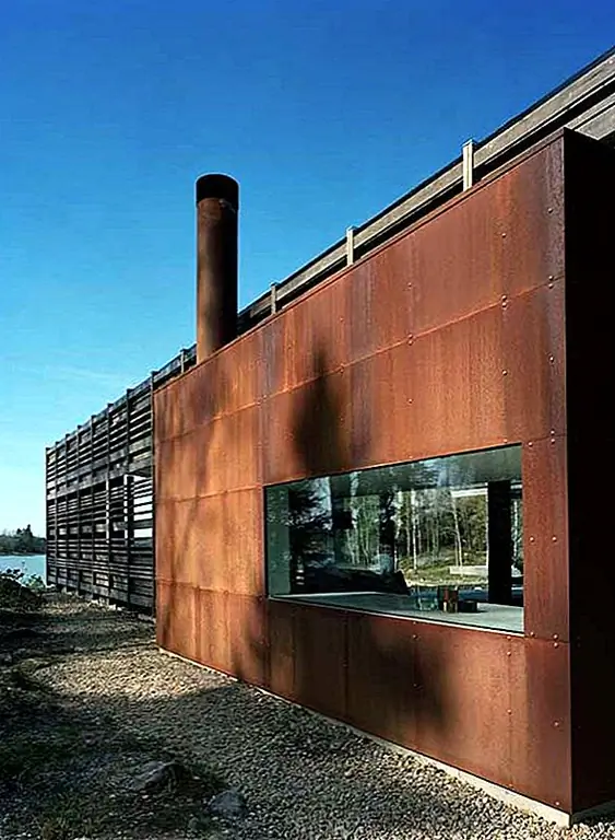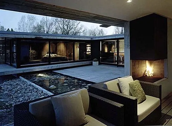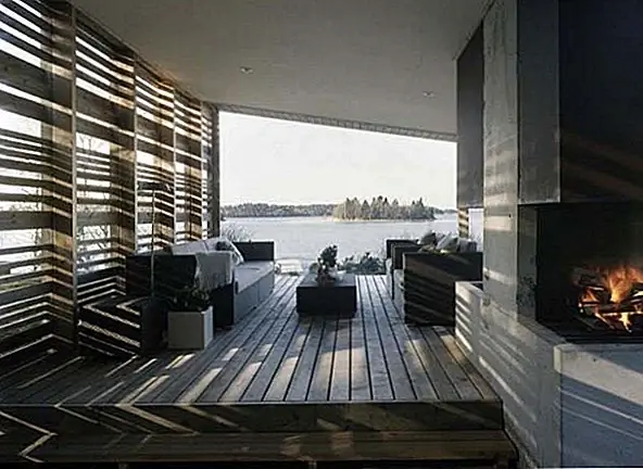 Это частная резиденция, H House WRB Architects в архипелаге Стокгольма - идеальный баланс архитектурных элементов, которые защищают структуру от сурового климата. Коридоры для ветра были созданы, когда архитекторы создали концепцию дома H-образной формы. Они воспользовались элементами природы и согнули их в удивительную форму. Открытый камин помогает продлить лето, создав связь между внешней и внутренней частью с помощью крытой патио с одной стеной. Бетон и ржавая сталь были основными материалами для наружной части здания. Внутренняя - внешняя игра с водой и камином привела к строительной истории элементов: огня, воды, ветра и земли и океана. Терраса с трех сторон предлагает короткий летний период наслаждения, но солнечные дни наслаждаются в полной мере с великолепным видом.