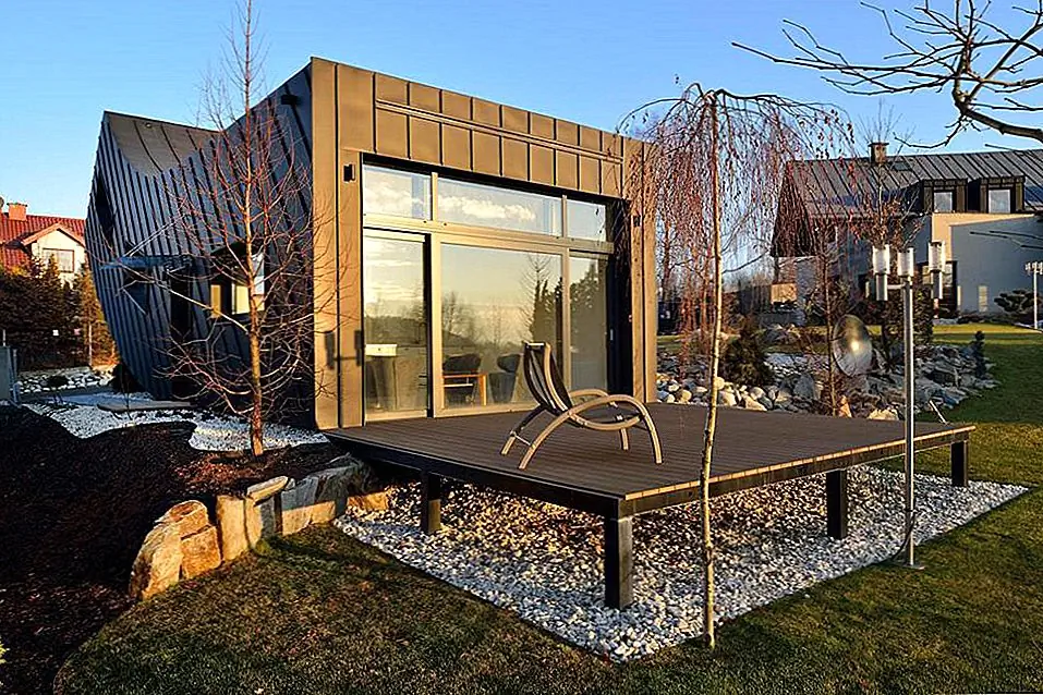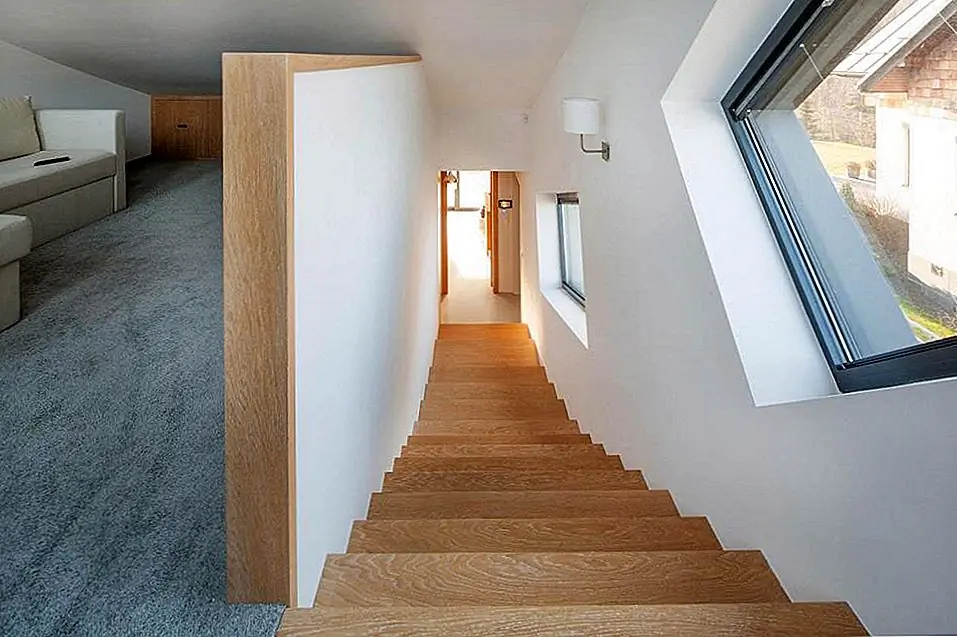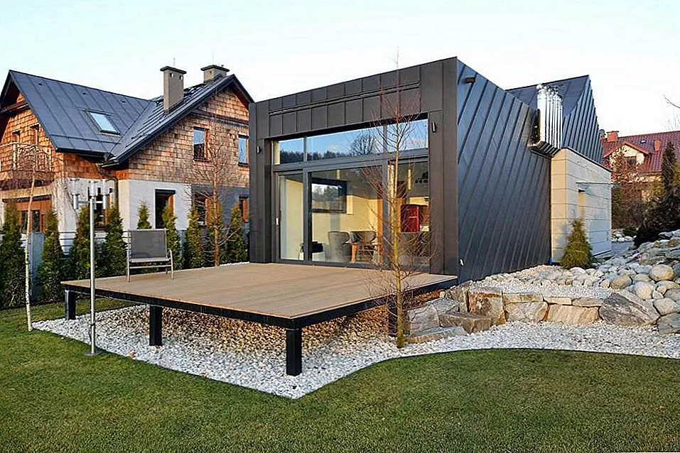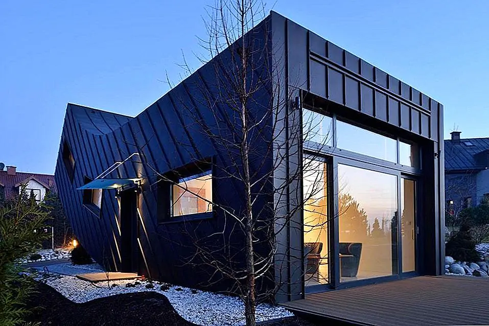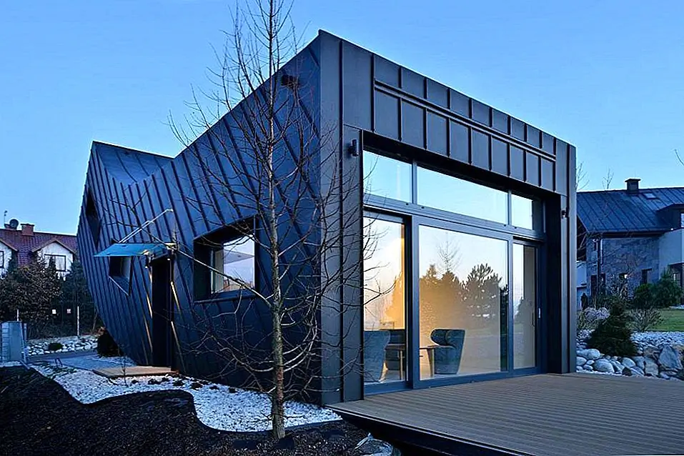 На фотографиях Томаша Закржевского мы видим необычное здание из разных точек зрения и понимаем, как даже палуба удлиняет жилые помещения на открытом воздухе. В хорошую погоду легко подключенные крытые / открытые пространства почти удваивают квадратные метры. Вход был помещен в сторону дома и украшен защитным навесом. Видимый на Trendir, эта потрясающе игривая архитектура определяет не только необходимость визуальных конфет, но также необходимость в простоте и функциональности.