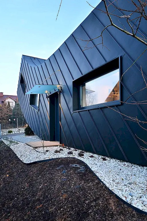 Как выглядит садовник? Ну, вот пример в Кракове, Польша, который может изменить вашу точку зрения на то, сколько жизненного пространства нужно человеку. Компактные дома не обязательно означают скучные дома. В руках творческих архитекторов, таких как Arciteckt.Lemanski, желания клиента превращаются в сказочные, достойные примера дома. Поднимаясь к небу через изогнутый объем, укрывающий лестницу, игривая архитектура дома Domo Dom вызывает сильное первое впечатление.