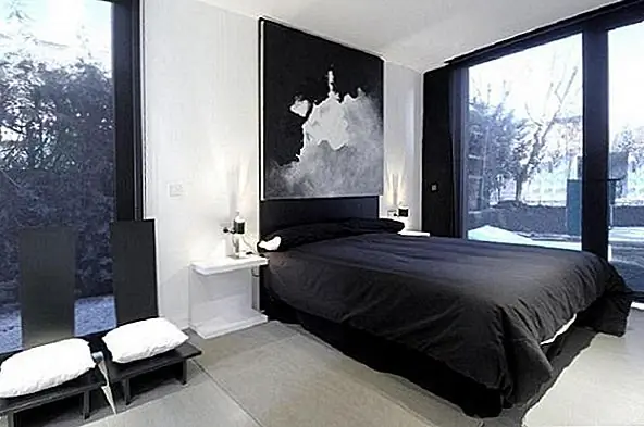 - Черная спальня таинственна: Вы когда-нибудь замечали, как черная спальня добавляет намек на тайну и соблазнение? Черный цвет может быть доминирующим цветом стен, мебели, постельных принадлежностей и аксессуаров или использовать черный в ключевых минимальных элементах, например, один предмет мебели или настенный рисунок. Для романтической спальни подумайте о том, чтобы черным и белым на кровати с навесом с белым мягким материалом, чтобы задрапироваться с навесов. Используйте черный пол во всей спальне белого цвета, чтобы добавить неожиданный контраст в красивую комнату.