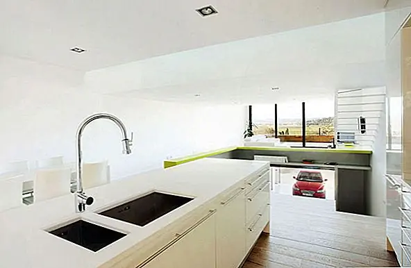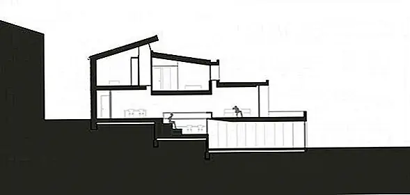 Гараж на первом этаже - это больше, чем просто место для семейного автомобиля - эта комната действует как переходное пространство, которое можно использовать разными способами. Уровень, занимаемый библиотекой и служебным пространством, был украшен трибунами, построившими логический переход к верхней столовой и кухонной площадке. Здесь, на уровне основного этажа, кухня, жилая площадь и терраса прерываются проходом от нижнего этажа, а вход с улицы открывается на север. Тогда есть спальни, просторные комнаты отдыха в полной гармонии с остальной частью дома. Посмотрев фотографии, вы поймете увлекательные решения, которые сделали этот дом современной резиденцией.