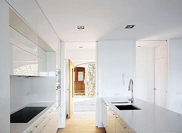 Расположенный в небольшой деревне недалеко от Жироны, Испания, которая также дает свое название, Дом в Касавеллсе это террасный дом на длинном и узком участке. Архитектурная студия в Хероне 05 AM Arquitectura спроектировал интерьеры с учетом особых потребностей семьи и возможностей сюжета. Затопленный уровень в середине первого этажа обеспечивает непрерывное соединение с открытыми пространствами, а естественный свет исходит из окон на разных уровнях дома, затопляя темные интерьеры через темные окна и раздвижные двери.