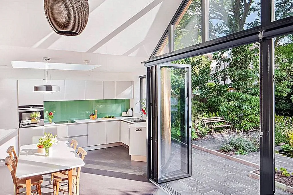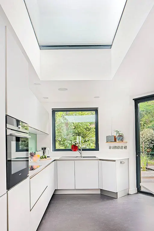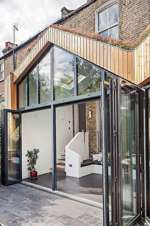 Первоначально проект рассматривался как противоречивый: «С одной стороны, наши клиенты были после современного открытого расширения, которое приносит много естественного света в гостиную, но в то же время они хотели уважать первоначальные пропорции и разделение пространства, - сказали архитекторы. Требования были выполнены путем строительства застекленного бревен, который вмещает кухню и столовую.