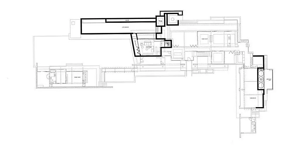 Тем не менее, есть и другие элементы, которые делают этот дом приятным и гостеприимным местом для жизни. Его большой и отражающий пруд отражает все здание и архитектурный стиль «Googie» под влиянием привлекательности американского общества для увлечения и футуристического дизайна делают здание современным и привлекательным, приглашая вас прийти и насладиться мирной обстановкой. Дизайн дома дополняется большим бассейном с стеклянной панелью между подвальным кинотеатром и водой, что, безусловно, делает все визуально впечатляющим.
