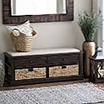 - Стул или небольшой пуфик, чтобы сидеть, чтобы снять ботинки. Оттоманка или скамейка, которая открывается для хранения, или скамья в стиле кубита или низкий книжный шкаф, - отличный вариант для сидения, который также предлагает дополнительное пространство для хранения.