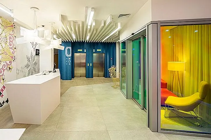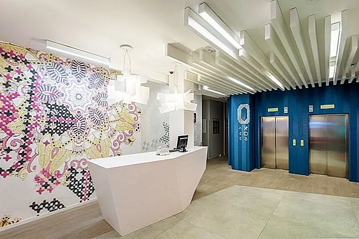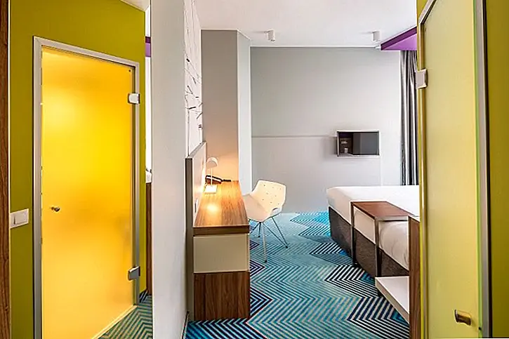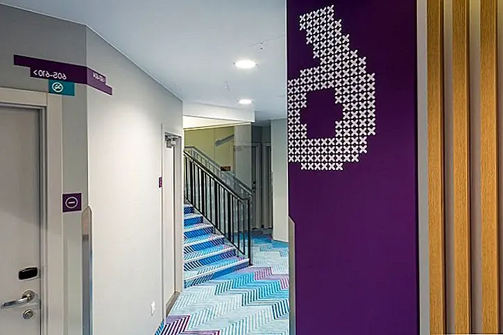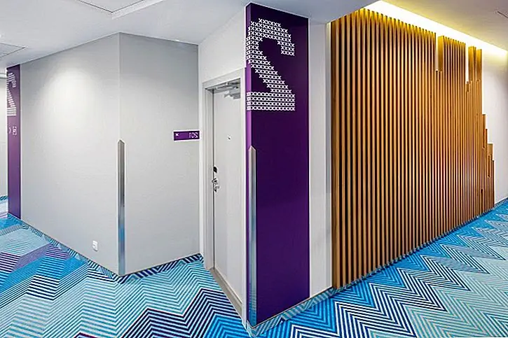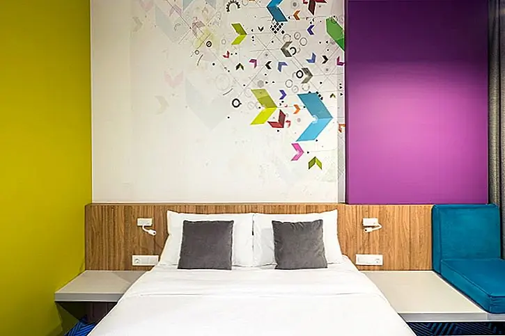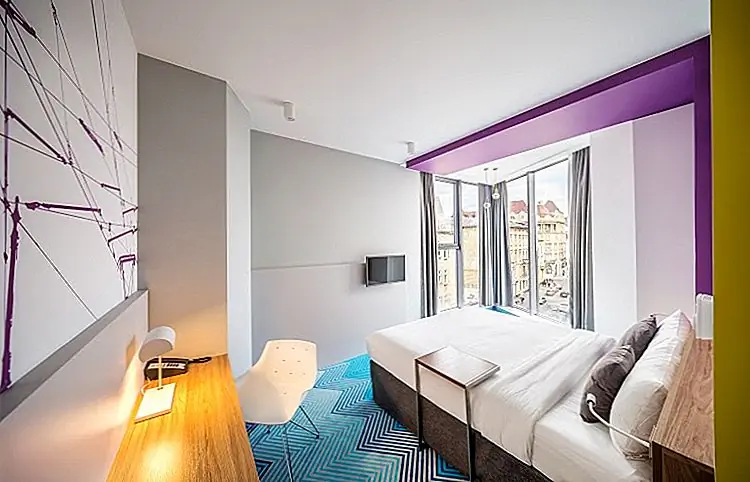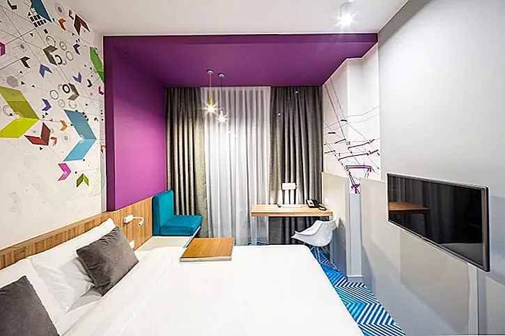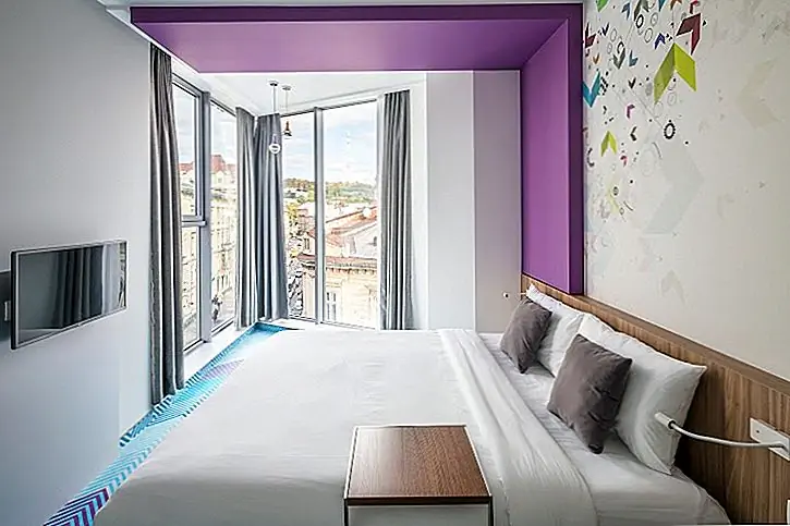 Польская студия дизайна Архитекторы EC-5, специализирующаяся на архитектуре гостеприимства и интерьерах, спроектированных Львовский центр Ибица, красочный отель в городе Львове, Украина.