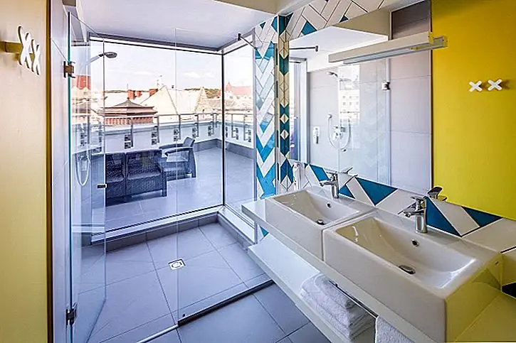 Новый отель добавляет новый вид на город, обычно связанный с памятниками и историческими зданиями. Современный подход к мотиву игловодителя используется для обоев, ковров и рисунка плитки для ванной комнаты.
