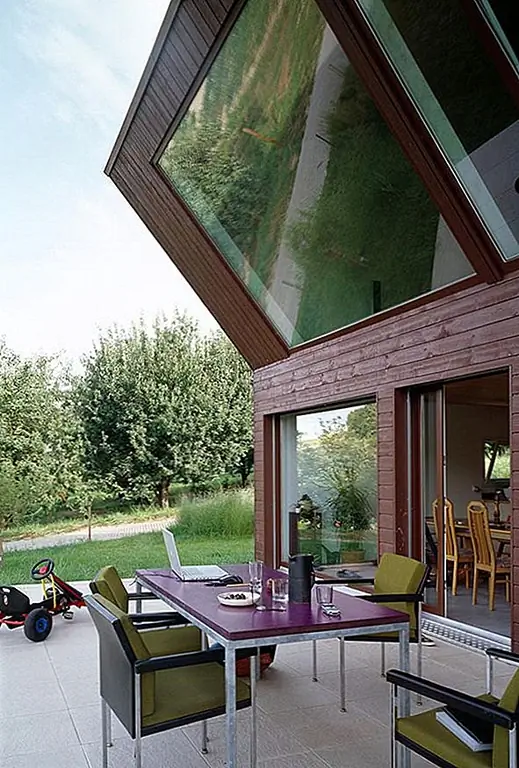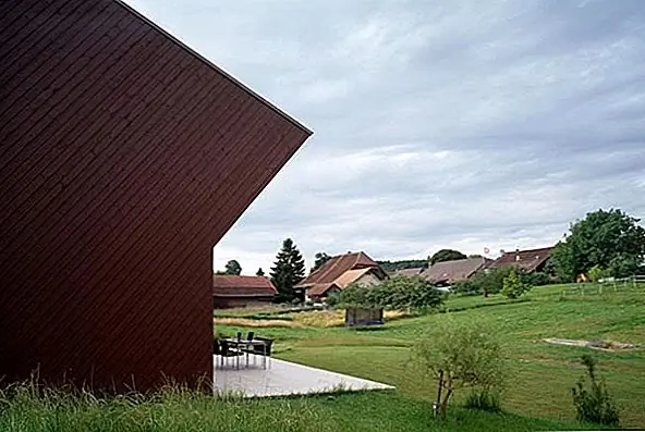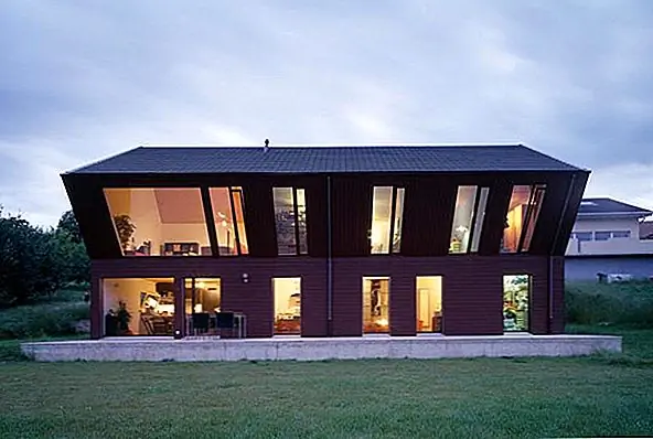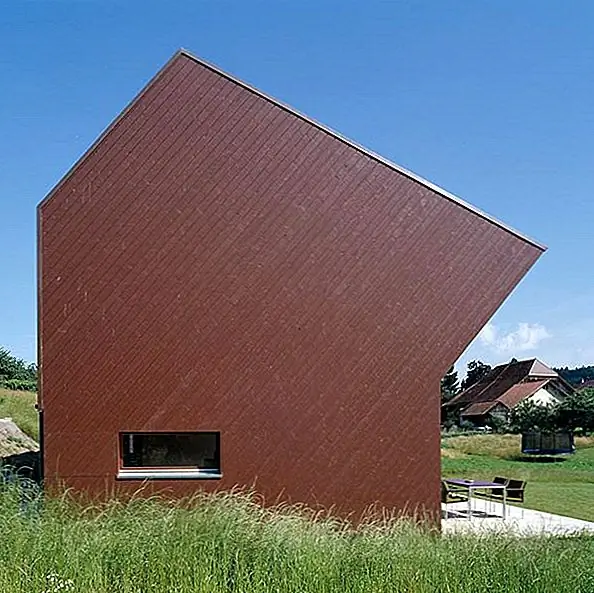 Этот сборный дом с двумя этажами в швейцарской сельской местности был построен с учетом потребностей жителей в уединении и освещении. Архитекторы FOVEA Architects интегрировали это современное напоминание о фермерском доме в сельскую местность сельской местности и создали Кривой дом, Верхний этаж наклонен на 40 градусов и опирается на первый прямоугольный пол. Угловая архитектурная идея помогает защитить неприкосновенность частной жизни людей, живущих здесь, и будет очень полезна, когда рядом с ней будут построены другие дома. Потребность в естественном освещении была достигнута путем установки огромных окон, которые направляют свет в помещении. Просторный внутренний дворик в передней части дома предлагает успокаивающий вид и возможность наслаждаться свежим воздухом и свежим воздухом.