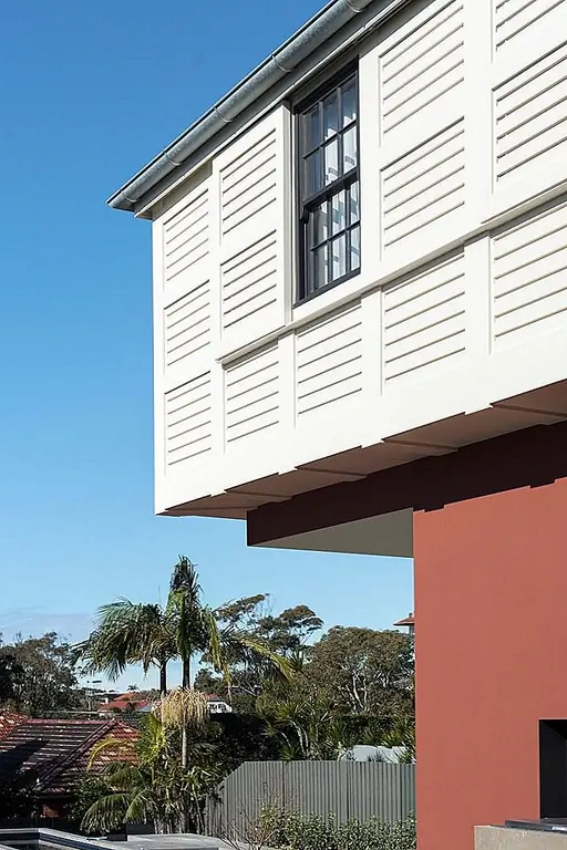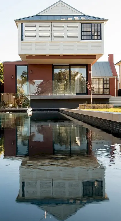 Белые и малиновые цвета дома были выбраны в честь землевладения и глинистой земли, вызывая традиционные строительные материалы. В доме нет искусственного кондиционирования воздуха; дом остается прохладным от перекрестной вентиляции и большого воздушного пространства, позволяя циркуляцию во время жаркого лета в Сиднее.