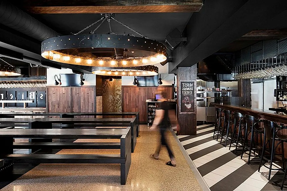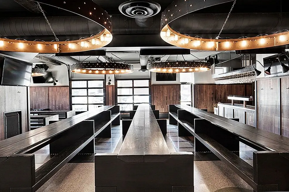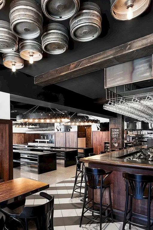 Предполагается Хума дизайн + архитектура, Das Bier в промышленном баре в Монреале, Канада. Проект, основанный на немецкой концепции «bierhall», является слиянием европейской страсти к большому пиву и стилю жизни Роузмонта.