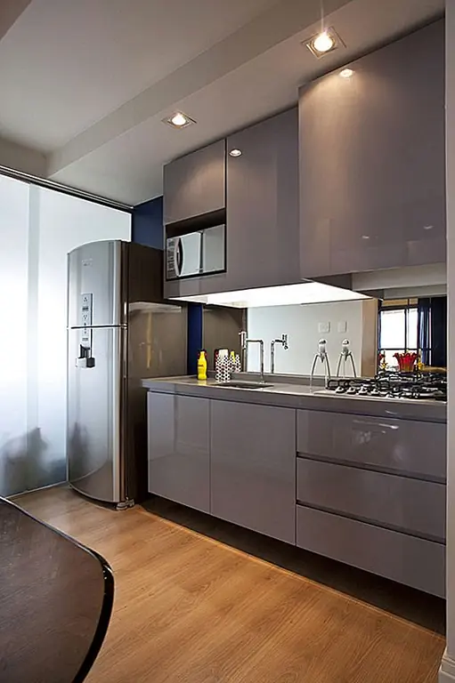 Маурисио Карам завершил разработку Апартаменты Leopoldo, отличный пример того, как оптимизировать пространство площадью 45 квадратных метров без какого-либо компромисса в стиле. Небольшая квартира, расположенная в Сан-Паулу, Бразилия, была переделана, избавившись от некоторых из существующих бесполезных стен и создав непрерывную жилую зону, но сохраняя высокий уровень уединения в ванной комнате и прачечной. Система деревянного ламинированного напольного покрытия способствует созданию впечатляющего пространства. Если вы считаете, что открытые гостиные комнаты планируют выбирать только для больших квартир, приготовьтесь удивляться, проверяя фотографии ниже. Ядром этой квартиры является увлекательный интерьер, сочетающий современный лаундж с большой кухней и прохладным обеденным столом на восемь человек. Визуально отделенные тончайшими деталями украшения, две живые зоны гармонично сливаются, и общая атмосфера, которую их дизайн вдохновляет, - это воздух и пространство. Найдите этот небольшой дизайн квартиры так же изобретательно, как и мы?