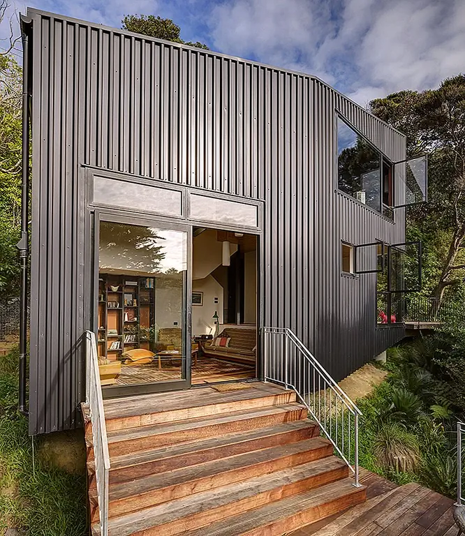 Glamuzina Paterson Architects завершила проектирование очень гостеприимной резиденции, расположенной в пышной зеленой среде в Новой Зеландии. Дом Блэкпула имеет общую площадь 81 кв. М, а его «вертикальный» подход к архитектуре отвечает на топографию сайта:Южная стена задумана как оборонительная стена, которая крепится к зданию и создает пространство внутри. Запись сжимает вас по прибытии, а затем появляется ощущение расширения, предлагаемое внутренним пространством двойной высоты за пределами.”