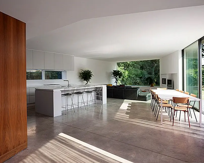 Расположенный в Thames Ditton, Surrey, England, этот внушительный дом от Soup Architects демонстрирует оригинальный вид. По словам разработчиков проекта, «дизайн использует нерегулярную форму существующего сада, чтобы убрать предлагаемый дом в скромный треугольный карман в сторону сада, который поддерживает длинные виды из главного дома. Предлагаемый дом ориентирован на то, чтобы свести к минимуму возвышение до / из квартиры на восток и максимизировать дневное и вечернее солнце, ориентируясь на Запад ». Достаточно большой, чтобы разместить трех семейных поколений, Клин-Хаус предоставляет множество неформальных пространств для сбора.