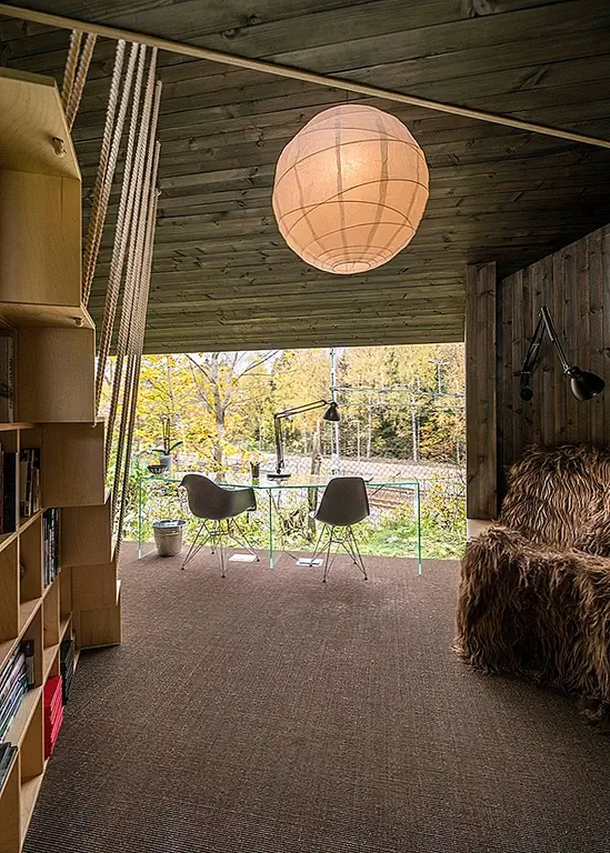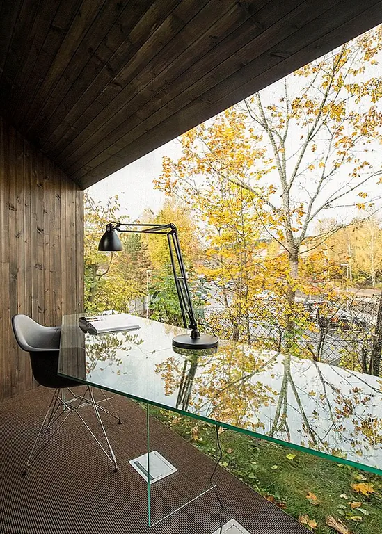 Специально для писателя в Осло, Noway, этот дом на заднем дворе - нетрадиционное современное святилище. Jarmund / Vigsnæs Arkitekter построил приложение к резиденции клиентов, с обширным видом на окружающий пейзаж, подходящим отступлением для творчества. По словам разработчиков, «проект поднимается в высоту к югу, чтобы достигнуть выше хеджирования соседа и позволить прямому солнечному свету течь внутрь. Южное возвышение узкое, чтобы избежать слишком большого количества солнечного света, который мог бы повредить рабочее место, и обеспечить конфиденциальность. «Сделанный полностью из стекла, северный фасад отражает пейзаж, вызывая состояние расслабления.