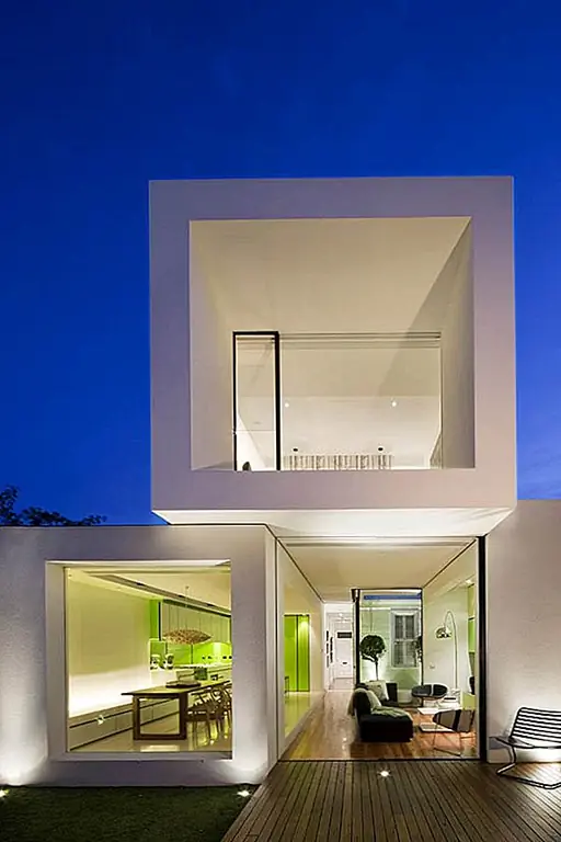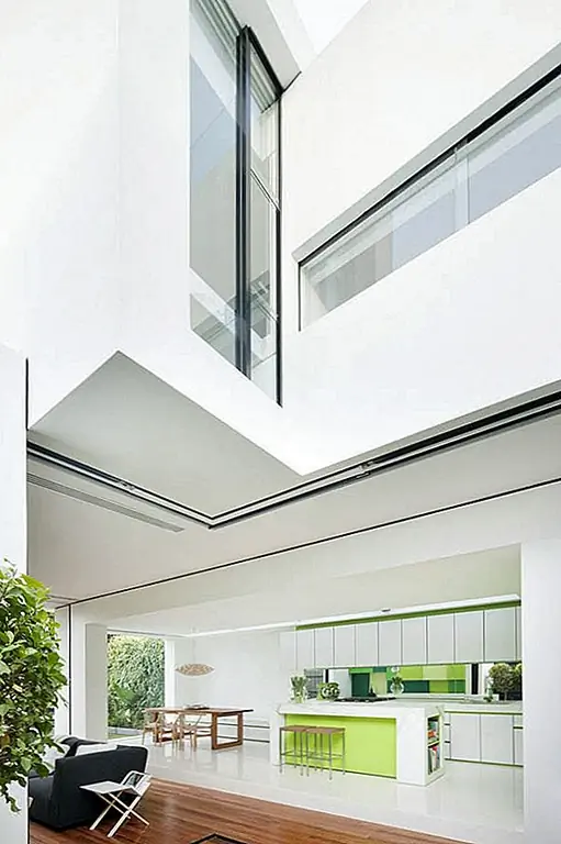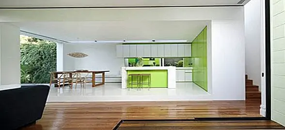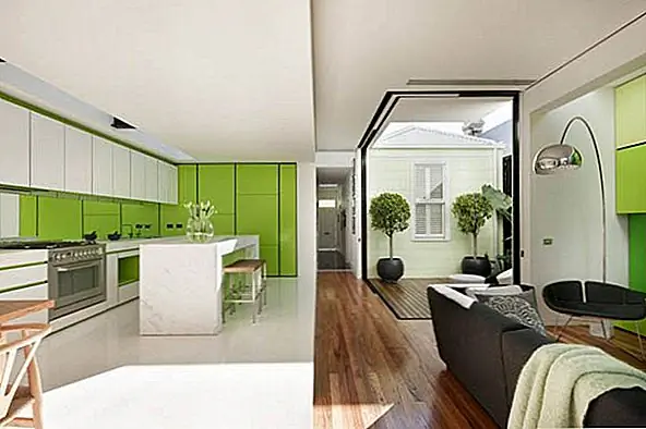 Этот дом является результатом того, что потребности владельца должны быть лучше связаны с «зелеными» пространствами, а также увеличить простор проживания. Расположенный в Мельбурне, Австралия, резиденция, известная как Дом Шакина Стивенса намек на его яркость с зеленой передней входной дверью. За ним современный дисплей из пространства заставляет вас почти забыть о викторианском наследии дома. Три белых тома открываются в сторону сада, создавая почти бесшовное соединение с окружающей средой при формировании жидкости, взаимодействующих внутренних пространств. Воображаемое Архитектура и дизайн Мэтта Гибсона как симфония комнат, адаптированных к современным требованиям, дом отображает желание жителя иметь "преимущественно белый интерьер с цветной подсветкой«. Выбрав разные зеленые тона, архитекторы создали общественные и частные пространства в полной гармонии с окружающей средой. Благодаря пассивной регулировке температуры, изоляции, карнизам для защиты от солнца или переработанному деревянному настилу и настилу, вступает в игру другой вид «зеленого», чтобы завершить все удобства, заключенные в этом "современный отвечает викторианской«Вилла.
