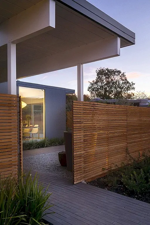 Appleberry Drive Residence в Маринвуде, Калифорния, является оригинальной Дом Эйхлера, недавно обновленный Строительная лаборатория, Несмотря на свой мощный характер, в здании не было реальной связи с природой: «Как можно сказать о большинстве эйчлеров, это был отличный дом для начала. С помощью тонкого, а не грандиозного, мы стремились возродить скромность, простоту и ясность оригинального дизайна. В масштабах сайта нашими двумя самыми серьезными проблемами были типичная айшлера Эйхлера на уличный фронт и отсутствие этой модели в атриуме или во дворе », - объяснили архитекторы.