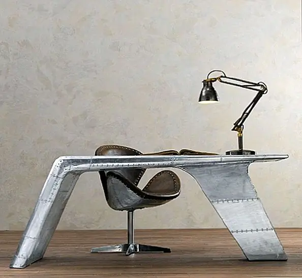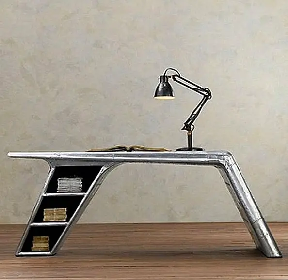 Мы нашли этот очень интригующий офисный стол, который наверняка поразит всех вас, увлеченных самолетами. Aviator Wing Desk доступен для покупки в Интернете на оборудовании Restauration Hardware и был вдохновлен изогнутым крылом самолета. Его внешний вид довольно необычен, что делает его ценной мебельной штукой, которая может привести к серьезному обновлению любого дома или офиса высокого класса. Необычный стол, выполненный из каркаса из твердой древесины, окруженного полированным алюминиевым пэчворком, имеет подлинный, удивительный металлический корпус с открытыми винтами. Три встроенных полки обеспечивают достаточное пространство для хранения файлов и книг. Стоимость такого эксцентричного товара? 1995 $. Стул, который вы видите на изображениях ниже, называется «Спитфайр» (вдохновленный знаменитым британским истребителем) и доступен за 995 $. Довольно впечатляющий офисный офис, разве вы не согласны? - через The Awesomer