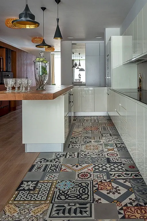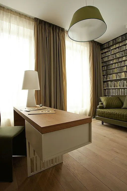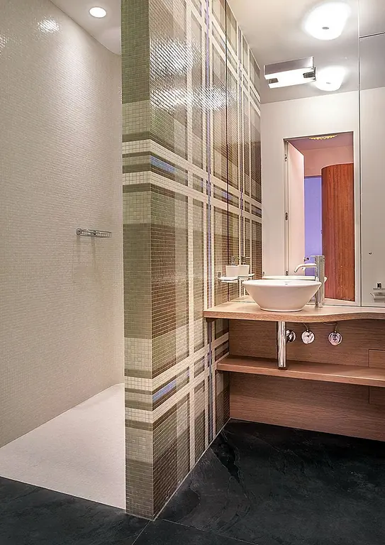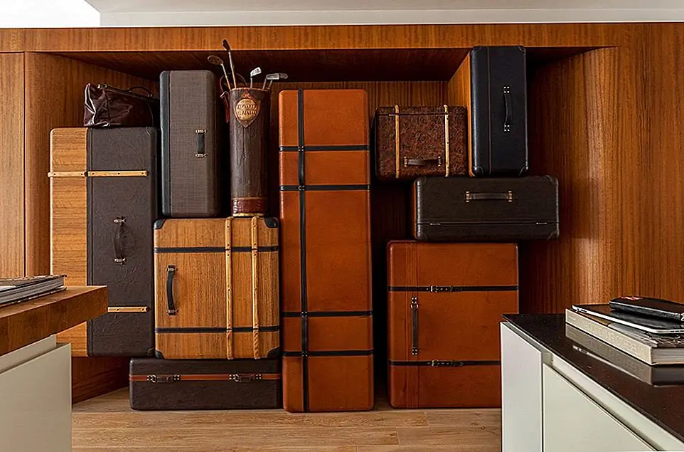 В середине прямоугольной планировки квартиры был создан модуль, функционально разделяющий интерьеры: Одетый в единый материал (мутеная древесина), он обеспечивает непрерывность и последовательность, в то время как у комнат, которые тяготеют вокруг, есть свое собственное украшение: ковер из цементной плитки на кухне, мозаика из тартана в душевой, книжная полка в офисе, украшена плитка с воздушными шарами в ванной комнате«. Самой яркой особенностью квартиры является массивная куча чемоданов, обеспечивающая хранение и вдохновляющая на необходимость скорого взлета. Наслаждайтесь фотографиями! [Фото: Каро Аван Дадаев]
