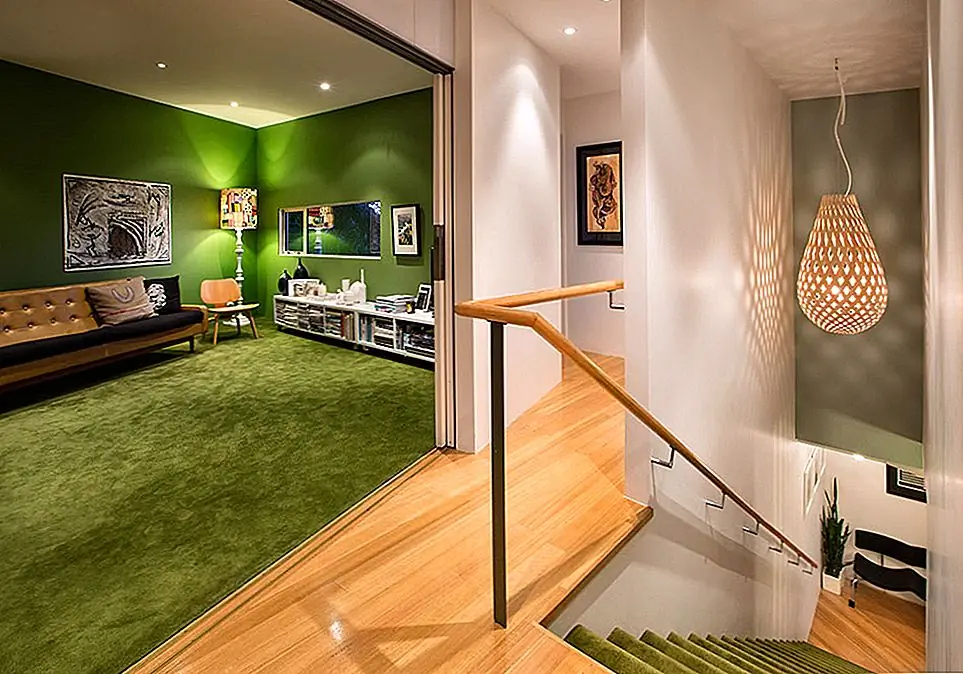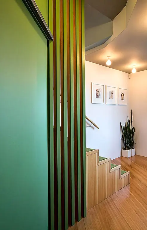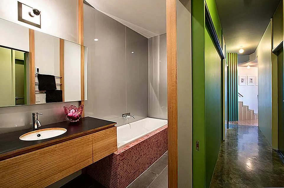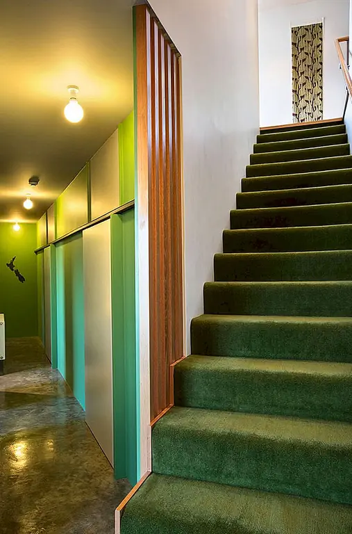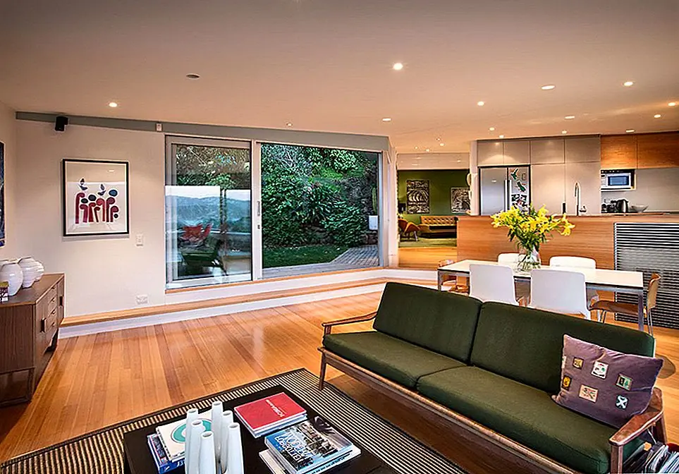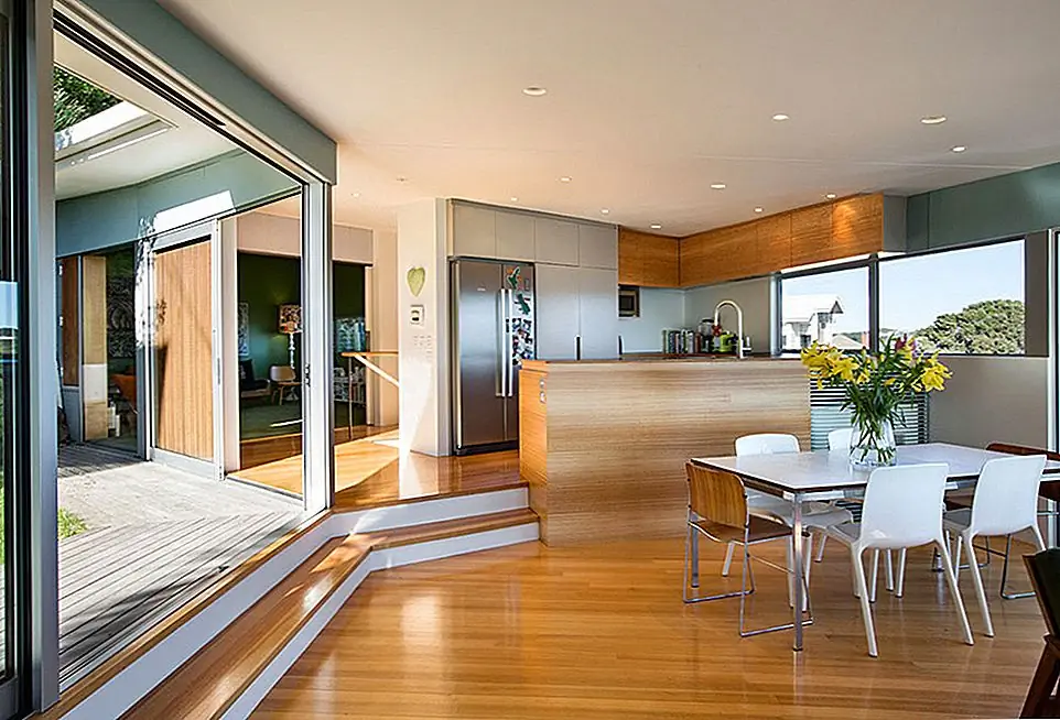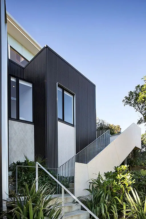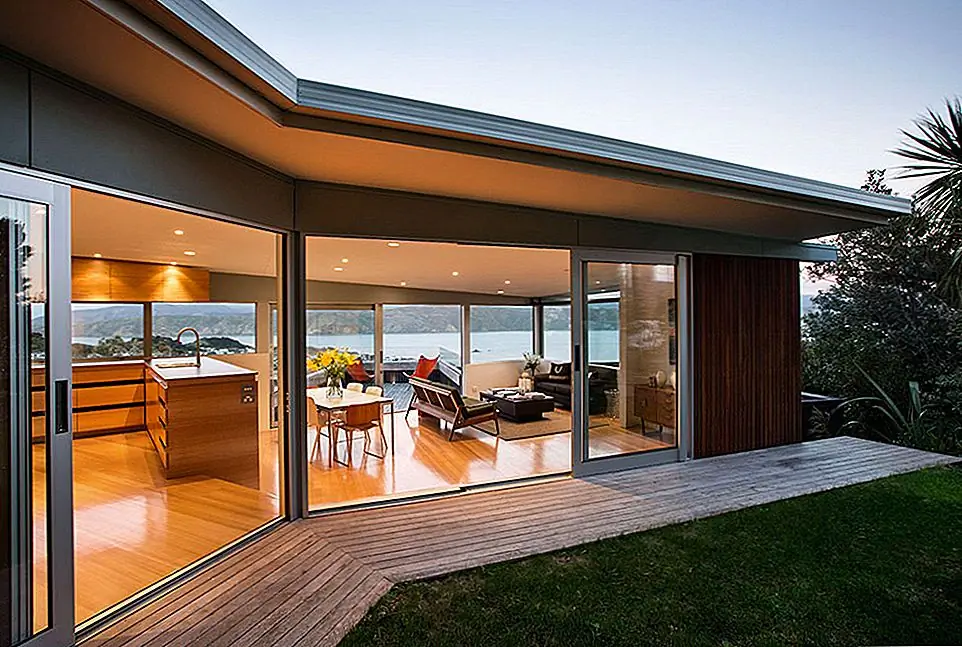 По словам архитекторов, два отдельных тома могут быть четко разделены: «Уровень спальни выкапывается обратно на склоне холма, образуя основу для верхнего, открытого и светлого уровня жизни. Уровень спальни волнистый в и из, позволяя свет и взгляды, давая каждой спальне другой характер и аспект. Более легкая форма уровня жизни над потоком протекает по уровню спальни, обертывая вокруг существующего небольшого плоского газона и сада к северо-западу от дома. Уровень пола спускается вниз по направлению к газону и позволяет просматривать виды через дом и выходить в гавань за пределами ». Интерьеры дружелюбны и приветливы, благодаря обширному использованию дерева, обилие цветных окон от пола до потолка с видом на гавань.