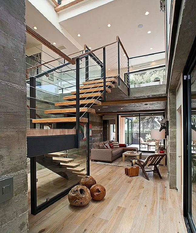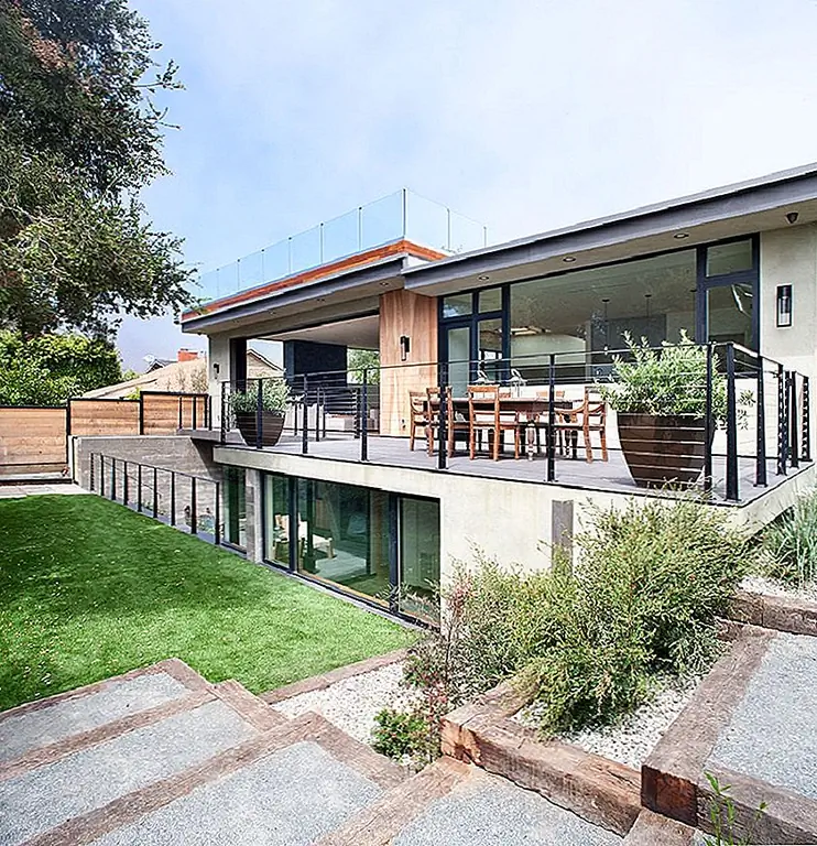 Расположен в Pacific Palisades, California, Bellino Drive Residence от Офис Майеса является примером современного дома с высокой дозой оригинальности. Отправной точкой для проекта был окружающий ландшафт, а океанские взгляды занимали центральное место: «Из-за ограничений по высоте здания предложение второй истории с существующего уровня оценки не было вариантом. Наше решение состояло в том, чтобы создать план первого уровня, вырезанный из класса, и второй этаж, плавающий выше, чтобы соответствовать требованиям высоты. Второй рассказ и крыша на крыше максимизируют площадь в квадратных футах, обеспечивая при этом обширные виды на океан и окружающие горы », - объяснили архитекторы.