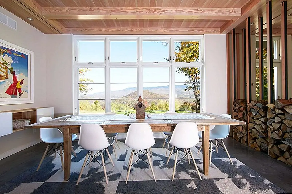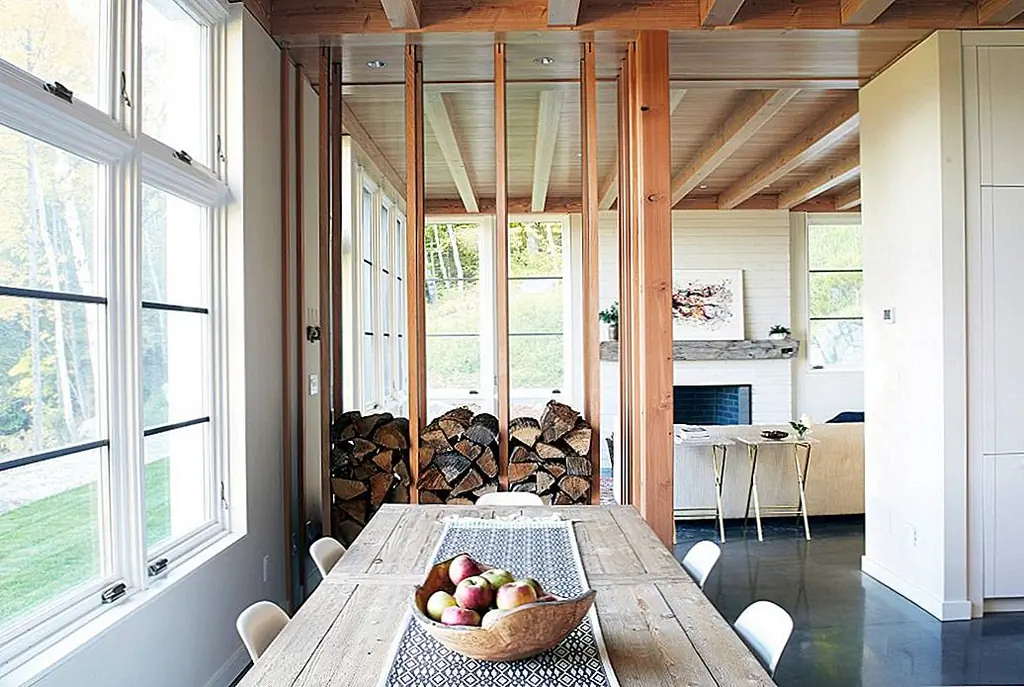 Свежая гостиная задает тон для гостеприимного дома. Здесь гости и гости могут отдохнуть в удобном кресле рядом с камином и стать свидетелем зимней магии. Стеки дров обеспечивают теплую и подлинную атмосферу. Столовая на восемь у окна кажется идеальным местом для встреч.