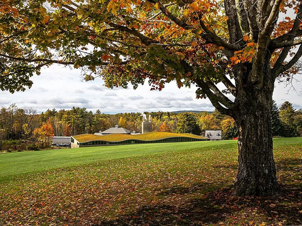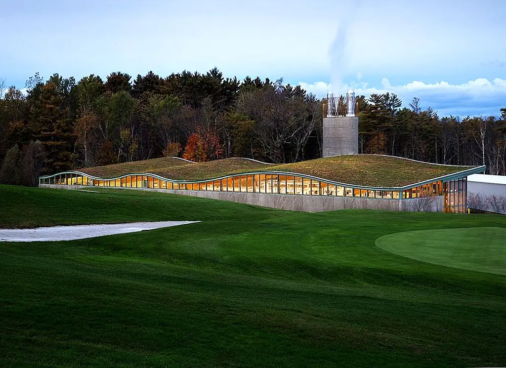 Электростанция, расположенная в Лейквилле, штат Коннектикут, США, не только высоко оценивает устойчивость, но и эстетику. Его волнистая крыша с образцами местной флоры хорошо интегрирована в наклонный пейзаж, между лесами и водно-болотными угодьями с одной стороны и полем для гольфа - с другой. [Фотографии: Дэвид Сандберг / Эсто]