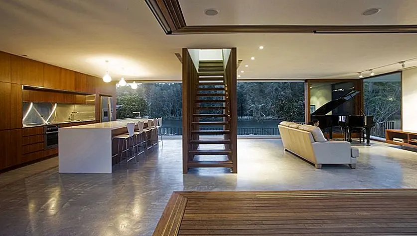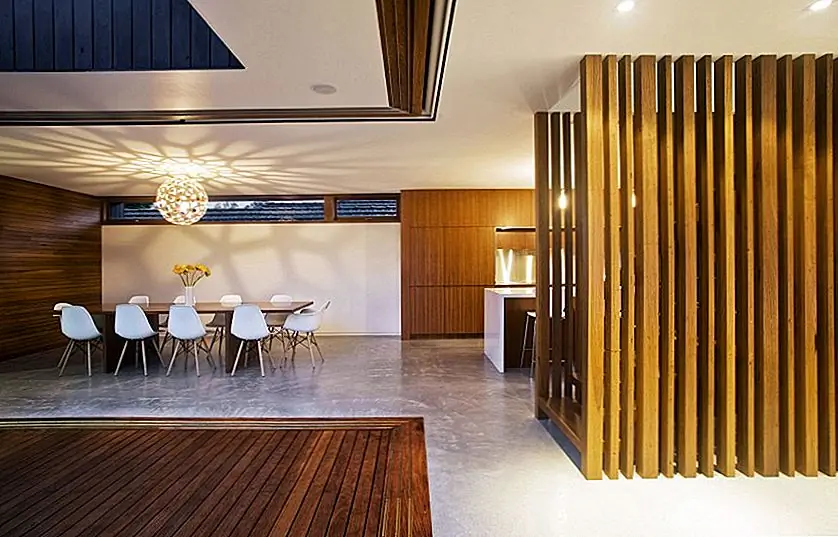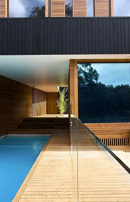 Расположенный в Наррабине, Австралия, этот современный дом, спроектированный CHROFI, умело адаптирован к своему историческому кварталу (определяемому планированием австралийского города начала 20-го века). Narabeen House выступает в качестве «буферной зоны» между естественной лагуной с одной стороны и пригородного городского пейзажа - с другой. Просторные возможности резиденции расширяются на открытом воздухе, с помощью деревянных колод и великолепного центрального двора. Широкое использование древесины позволило архитекторам визуально интегрировать новый проект в окружающую среду, несмотря на современную геометрию.