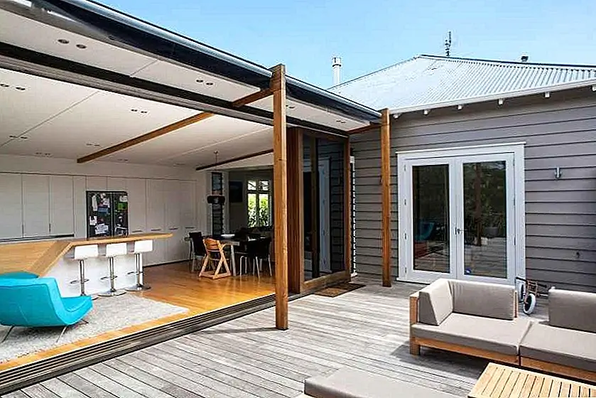 Резиденция Гросвенор-стрит от Доррингтон Атчисон Архитекторы это дом в стиле бунгало, недавно обновленный с ярким расширением. Расположенная в Окленде, Новая Зеландия, резиденция несколько раз обновлялась серией темных худых пальцев, что заставляло пространства казаться загроможденными. По словам архитекторов, «современный павильон теперь простирается от задней части жилища, чтобы обеспечить живую, обеденную и кухонную зону, которая легко проникает в сад. Чтобы избежать неуклюжей связи между старым и новым, он связан с бунгало шириной в один метр (3,28-футовый). «Получающееся расширение обеспечивает большое количество дополнительного пространства, при этом естественное освещение остальная часть интерьеров также.