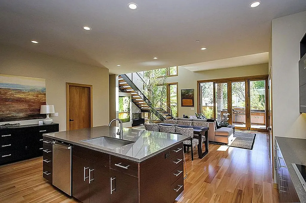 Нам нравится сложный стиль дизайна, отображаемый в новейшем жилом проекте, разработанном Toby Long Design и Cipriani Studios Design в Берлингем, штат Калифорния. Облицовочные плитки прекрасно работают с деревом и бетоном, создавая уникальный и современный дом. Дом теплый и гостеприимный, характеризуется прозрачностью и легкостью. Исследуйте пышную растительность, которая окружает эту резиденцию Берлингейма и позволяет себе вдохновляться ею! Облицовочные плитки и потолок с деревянной террасой добавляют прикосновение к дереву, элемент, который придает этому дому, его вдохновляющую уникальность.