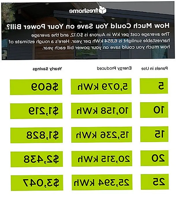 Аврора получает 6854 урожайных кВтч в год. Средняя жилая цена за кВт составляет 12 центов. Что касается средней нормы электроэнергии в жилых домах Авроры, то город сообщает, что на 6,99% меньше, чем в среднем по стране. Переход на солнечную энергию в Авроре может стать серьезным облегчением для вашего бюджета и кошелька. Кроме того, добавьте множество комбинированных государственных и федеральных стимулов и вышеупомянутое возмещение Авроры платы за разрешение солнечных батарей. Здесь солнечный выключатель стоит того.
