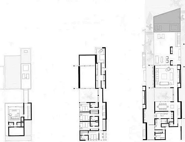 Одной из наиболее привлекательных особенностей резиденции является внутренний сад, соединяющий два тома здания, через специальный коридор. Зоны обслуживания, такие как кухня и столовая, расположены в первом квартале, а также размещаются двойной высоты, открытой планировки, открываются к террасе и бассейну. Спальни расположены на втором уровне, откуда открывается прекрасный вид на море. Обязательно взгляните на планы архитектуры ниже, чтобы лучше понять проект.