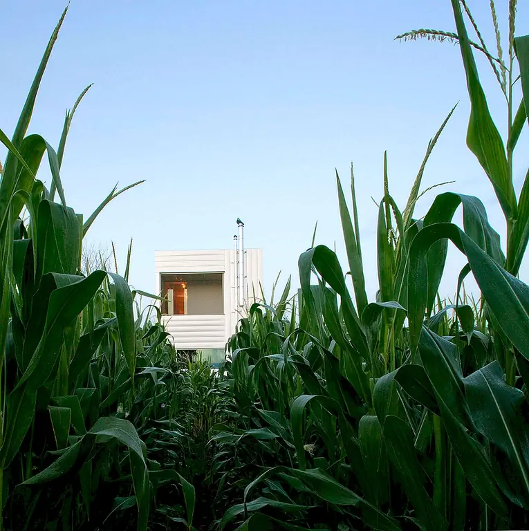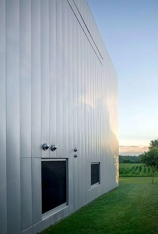 Архитекторы Wendell Burnette Architects вдохновлялись зернохранилищами в своем дизайне этого современного фермерского дома в Висконсине. На расстоянии, Полевой дом оцинкованные стороны цинка и двухэтажная прямоугольная масса выглядят как чисто функциональное здание, расположенное в полях кукурузы.