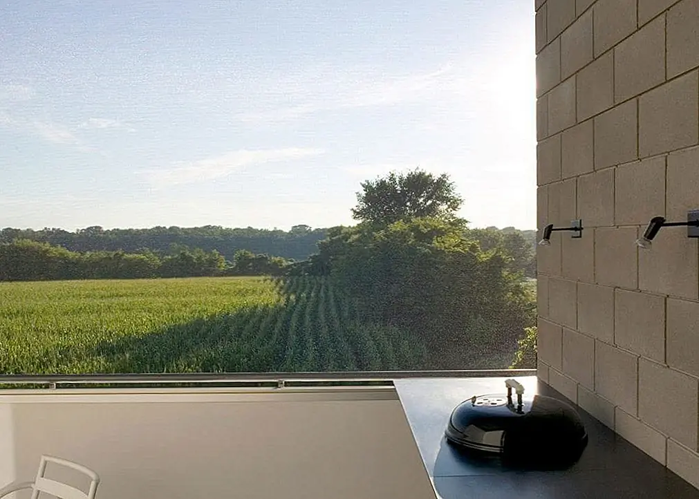 Вы только замечаете современный, художественный стиль дома, когда приближаетесь. На одной стороне дома есть две полосы окон, из которых открывается потрясающий вид на прерию. Этот акцент на декорации продолжается в большинстве стильных номеров в доме.