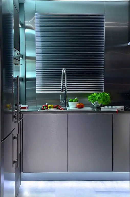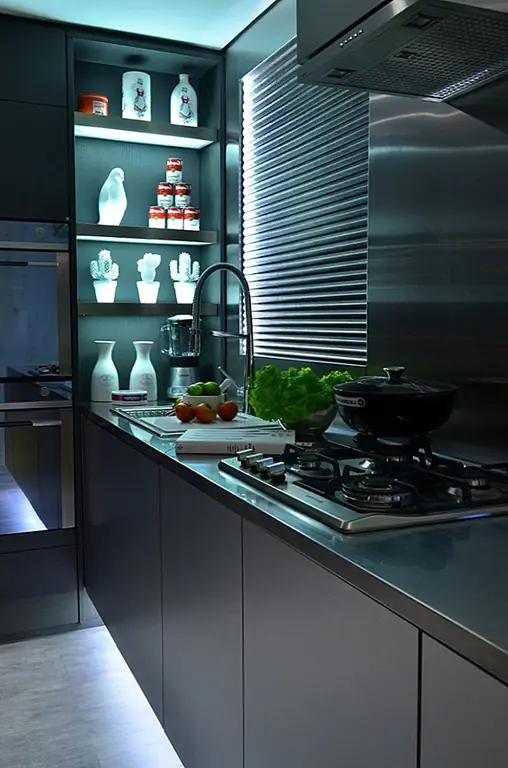 Выявляя уникальные функции: от городских произведений искусства до творческих световых установок, концепцию живого интерьера, разработанную Лисианой Скорделли и Жоау Педро Кресценте для выставки дизайна интерьера Mostra Casa & Cia 2013 не для всех (если вам не нравятся эксперименты и креативность, когда дело доходит до дизайна, «не пробуйте это дома»). Мы видели множество художественных домов, в которых сочетаются эклектичные элементы декора, но мы редко видели кухню настолько эксцентричной! Для начала, пространство определяется двумя томами.«Темно-серый объем - монолит, который при вычитании выдает некоторые из его функций, таких как приборы, зона отдыха и служебный вход в квартиру. Объем серебра поднимается, как плавающее тело, которое распространяется по всей комнате, а металлические поверхности добавляют легкость и смелый характер в пространство ».