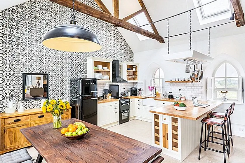 Приглашающая смесь старого и нового, эта реставрация предлагает ряд очаровательных деталей дизайна. Кухня - это открытое приглашение к социализации, пить чай или готовить еду. Оригинальная деревянная мебель, камин в центре гостиной и открытые балки способствуют теплой атмосфере. [Фото: Крис Хамфрис]