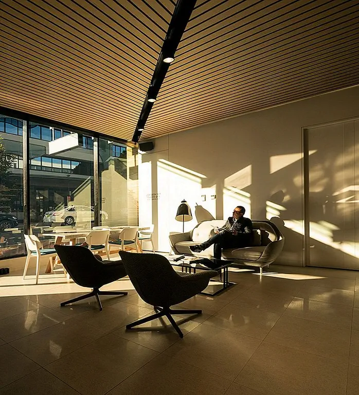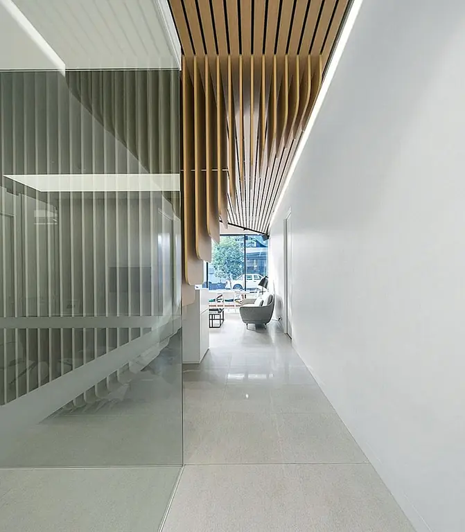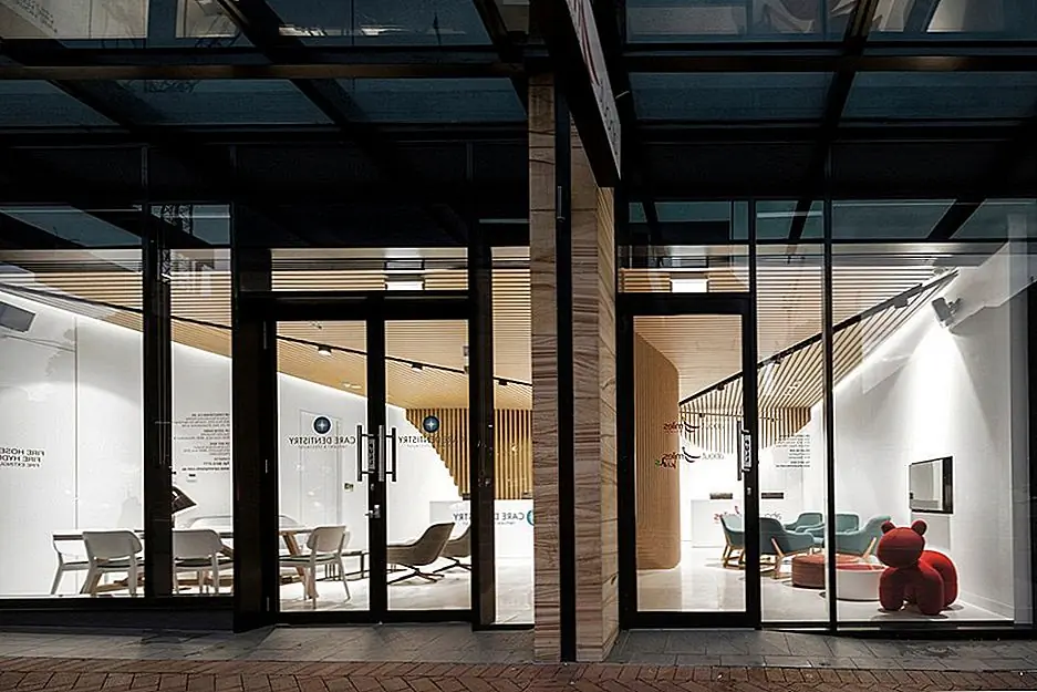 На одной из элитных торговых улиц Сиднея Архитекторы Педра Сильва были приглашены разработать современную стоматологическую клинику. Клиент запросил два приема с двумя входами, которые могли функционировать отдельно, но без ущерба для чувства простора и его отношений с проходящими мимо людьми. В том же пространстве существовала упрямая структурная колонна, которая, казалось, навязывала себя во всех попытках интегрировать ее в дизайн. Решение? Отвечая на краткое и волшебное сообщение, колонка исчезнет!